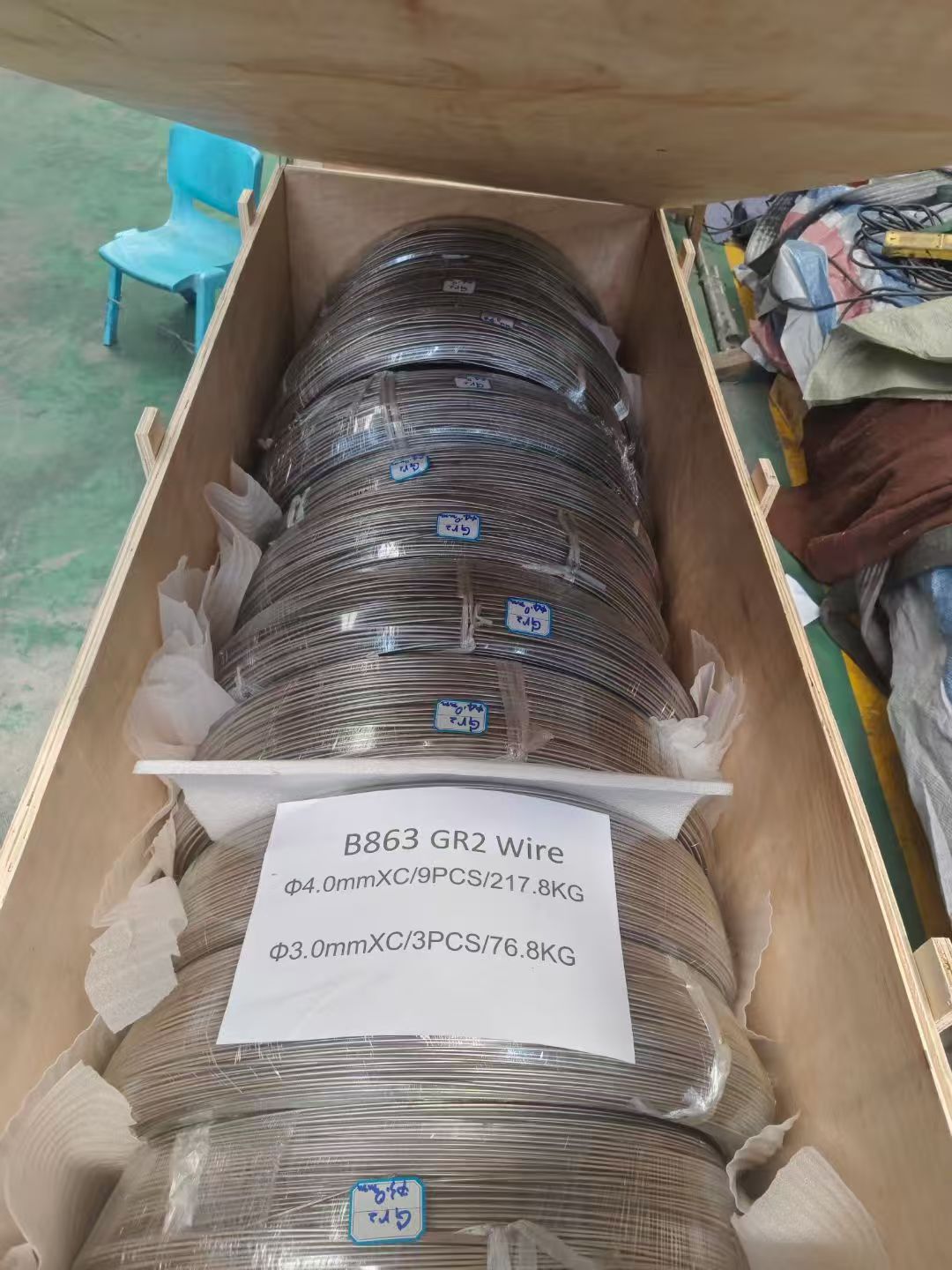 Titanium wires are mainly used in aerospace, petrochemical, marine engineering, electroplating hangers, Material: Gr1, Gr2, Gr 5 Gr23 etc. Erti-1 ,Erti-2, Erti-3, Erti-4, Erti-5,Erti-7,Erti-9,Erti-12 etc. Standard: ASTM B863 AWS A 5.16 Features: 1.Light in weight and small in area 2.High specific strength, durable, with good hardness and toughness 3.Corrosion - resistant during anodizing treatment, no insulating layer will be formed Good electrical conductivity, high temperature resistance and low temperature resistance